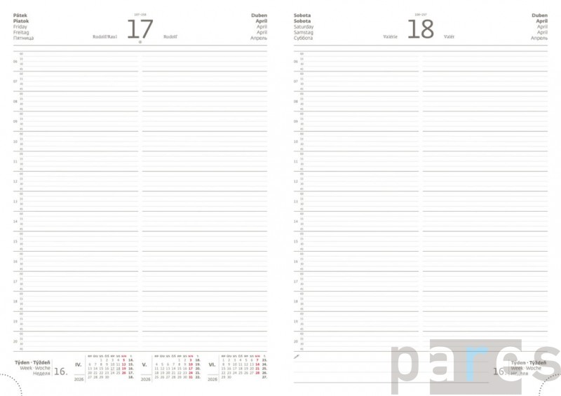 Formát diáře: 210 x 297 mm Rozsah diáře: 400 stran Kalendárium: denní
