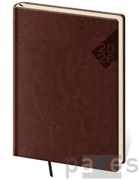 Formát diáře: 145 x 205 mm Rozsah diáře: 352 stran Kalendárium: denní + papír bloku chamois