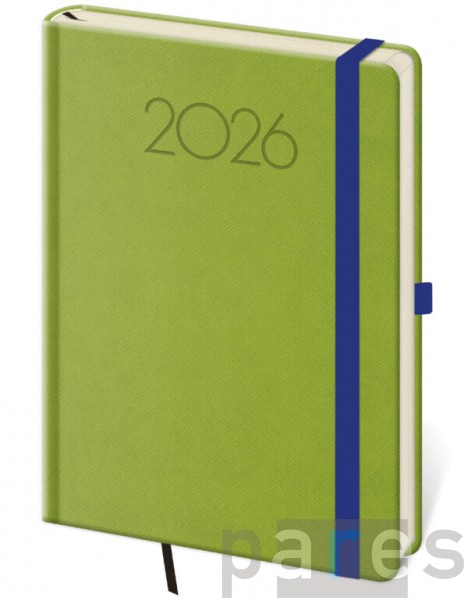 Formát diáře: 145 x 205 mm Rozsah diáře: 352 stran Kalendárium: denní + poutko na tužku + papír bloku chamois